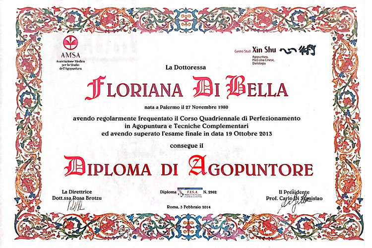 Mi sono diplomata nel 2013 presso il centro studi Xin Shu, insegno agopuntura presso la Scuola Italiana di Agopuntura SIDA.